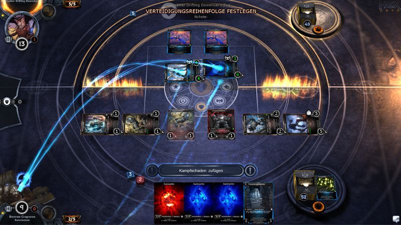 Zwerge sind in HEX - Shards of Fate bekannt für behutsames Vorgehen. Erst wenn jedes Detail sitzt und alles an seinem Platz ist, wird der Sack zugemacht und der Lohn für die harte Arbeit entgegen genommen. Davon zeugen der Umgang mit Artefakten und Maschinen, die über mehrere Runden ins Spiel gebracht und positioniert werden, um im Anschluss die entscheidende Wende zu bringen. Es gilt als Zwerg also, defensiv zu spielen und Contenance zu wahren, bis der Wind sich zu eigenen Gunsten gedreht hat.
