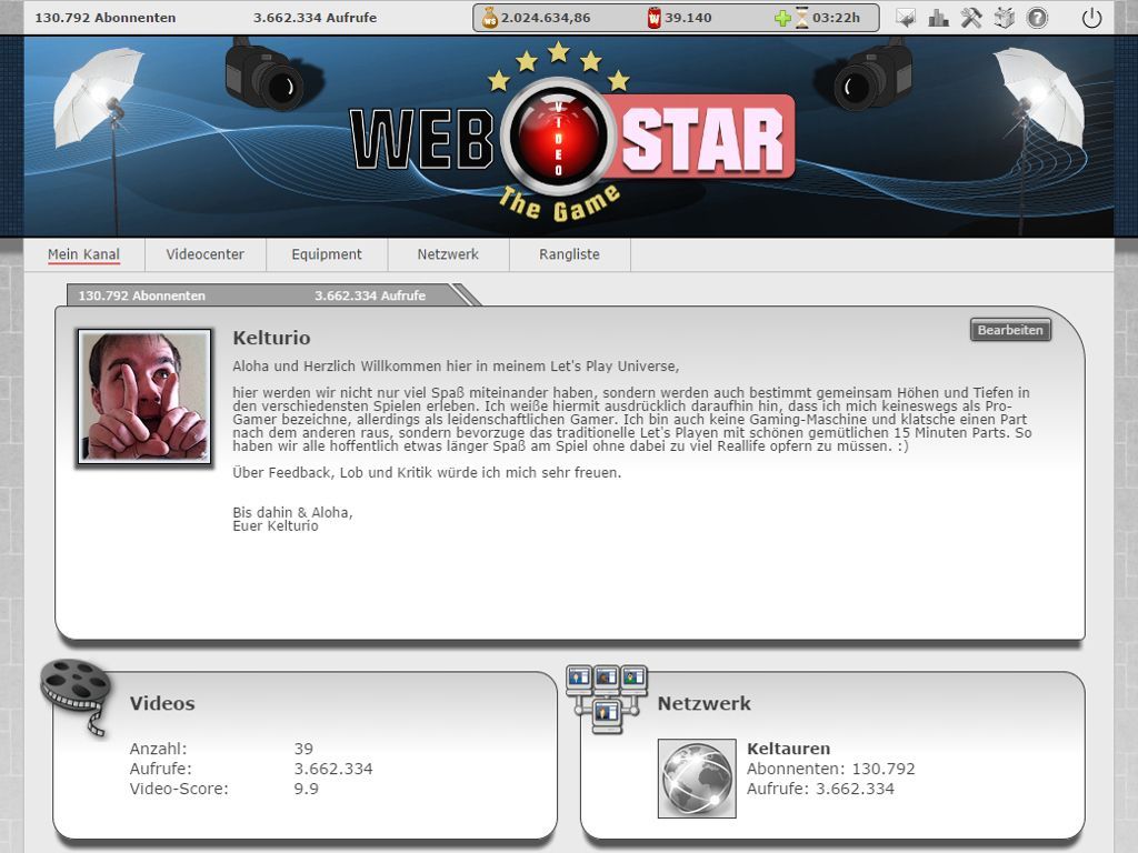Wer schon immer einmal die Thematik rund um Videoportale wie YouTube oder Webvideo auf spielerische Art und Weise in Form eines Browsergames erleben wollte, für den dürfte Webvideostar - The Game sicherlich einen näheren Blick wert sein.